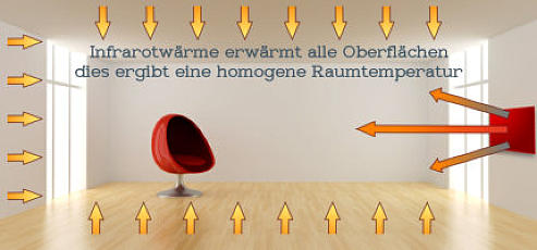 Alles über Infrarotheizungen Das Heizen mit Infrarotwärme ist älter als man glaubt und erfreut sich immer höherer Beliebtheit. Es ist auch Nahe liegend Räume mit Infrarotwärme zu beheizen, denn es ist die natürlichste Art der Wärmeübertragung und ist mit Ökostrom betrieben, das Umwelt freundlichste Heizsystem.